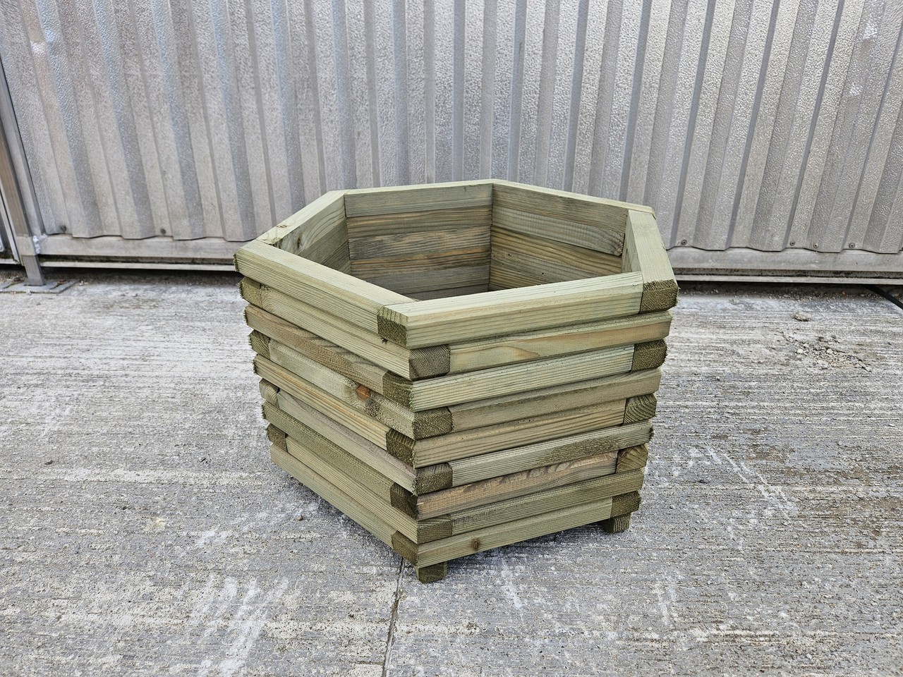Jardinieră hexagonală din lemn