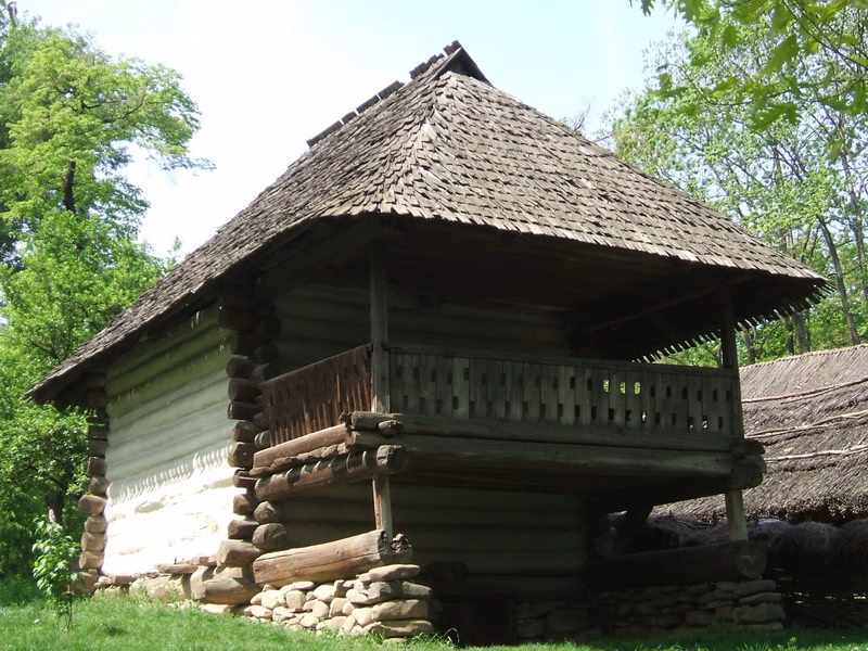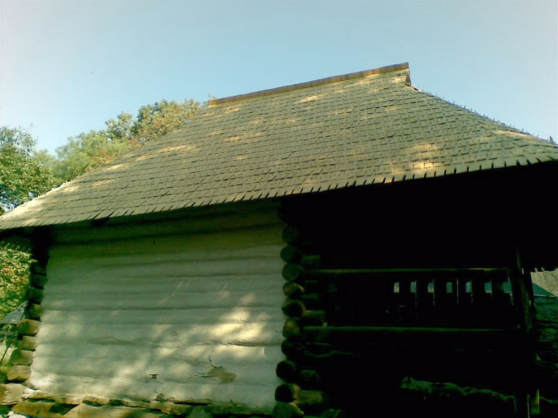 Șindrila casei este bătută cu cuie de lemn.